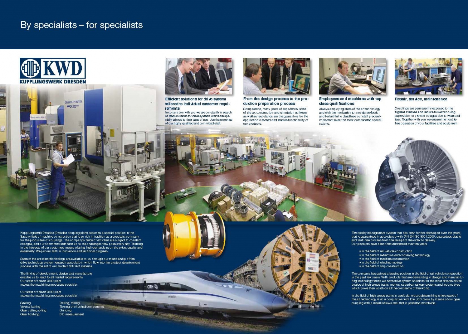 In the course of the further development of Kupplungswerk Dresden GmbH as an innovative problem solver in the drive technology sector, and as a specialist enterprise for the production of couplings and drive components, new fields were penetrated, new sales structures were established and the company KWD Kupplungswerk Dresden GmbH was founded effective as of 1 January 1993.